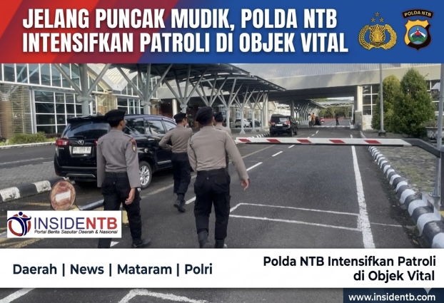 Mataram | Personel Polda NTB terus memperkuat pengamanan jelang arus mudik Lebaran 2026. Patroli intensif digelar di kawasan Bandara Internasional Zainuddin Abdul Madjid (BIZAM), Senin (23/3/2026) Sore.